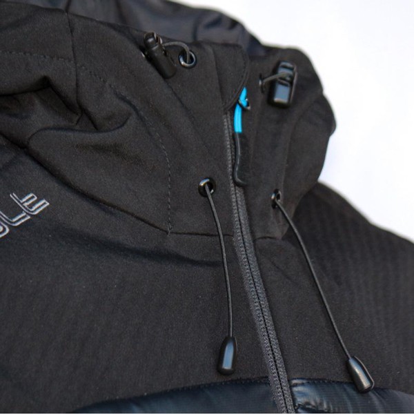 - Denne opvarmede jakke har et 3-zoners varmesystem. 2 zoner er placeret i brysthøjde, på hver side af lynlåsen. 1 zone fokuserer på den øverste del af ryggen.